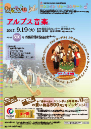 | 公演名 | 平成29年度 文化庁 劇場・音楽堂等活性化事業 ワンコインリレーコンサート vol.2 アルプス音楽 |