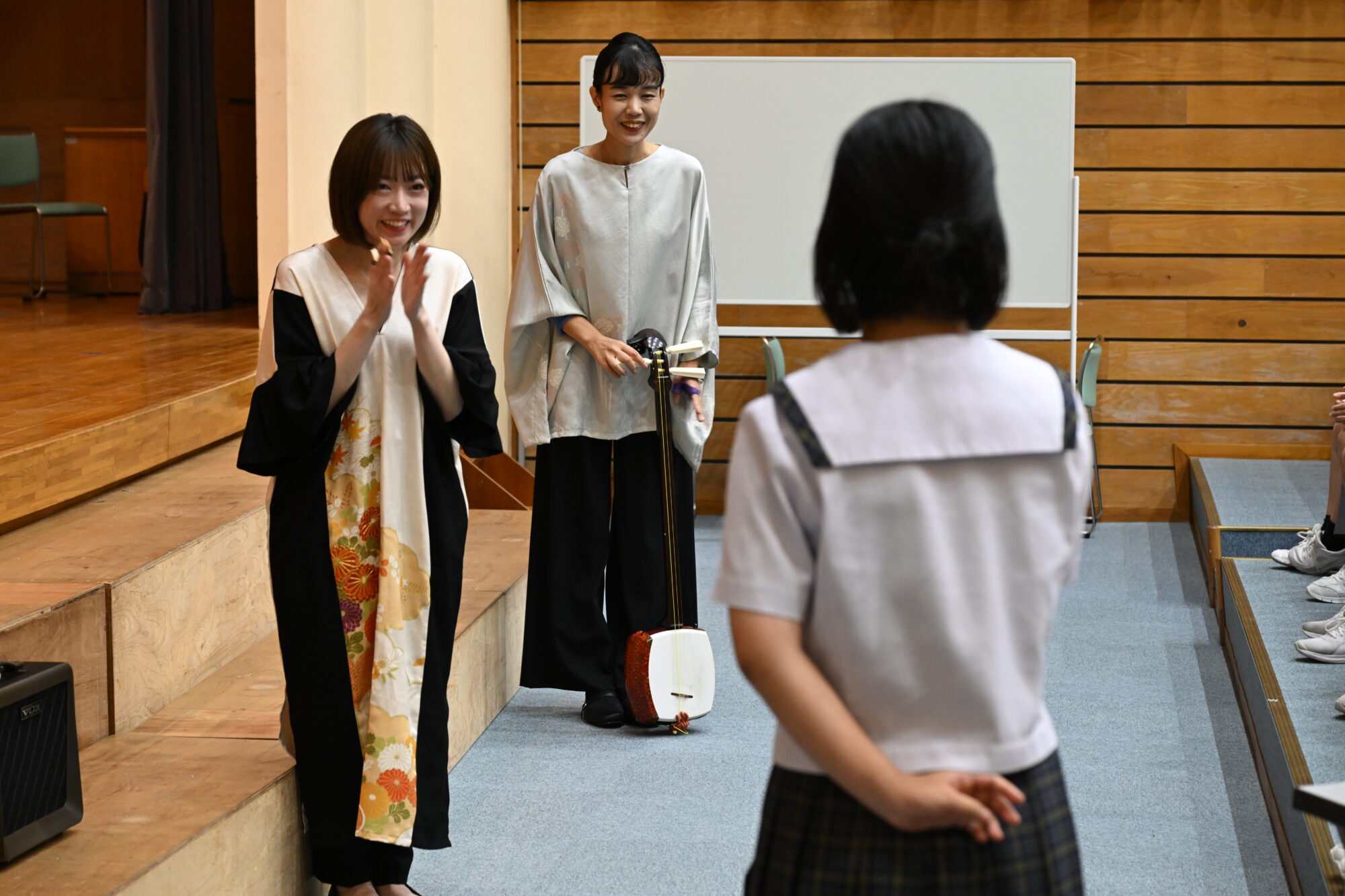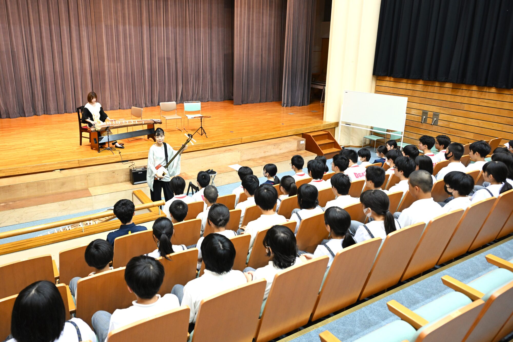 長い夏が終わり、朝晩やっと秋を感じる気温になってきた9月25日、和楽器デュオ絲-ito-は豊後大野市立緒方中学校にお邪魔しました。