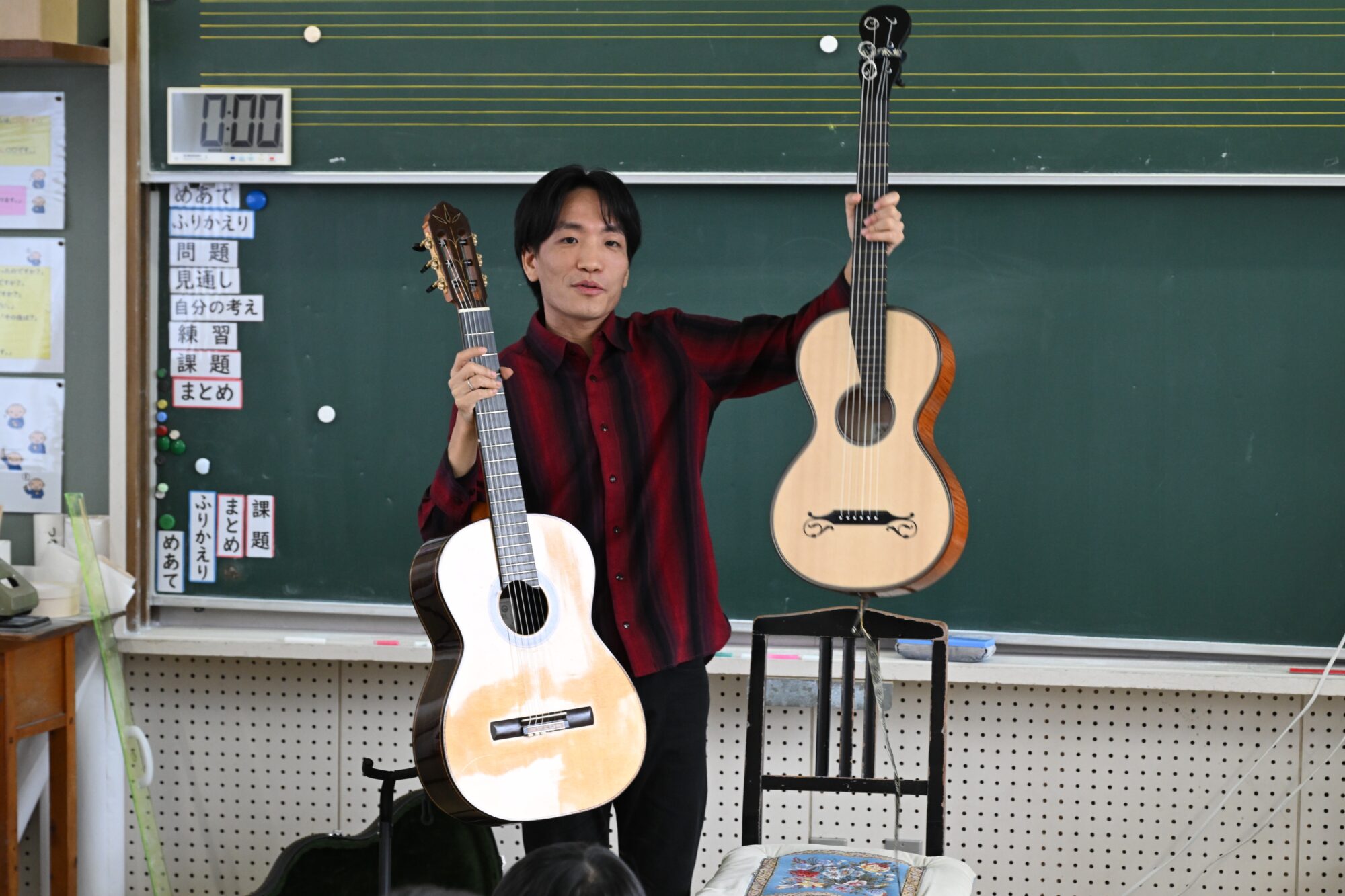 3本のギターのどれが好きだったかを聞いたのですが、バロックギターが若干多くはありましたが、みんなそれぞれ好きなギターの音色を見つけてくれたようです。