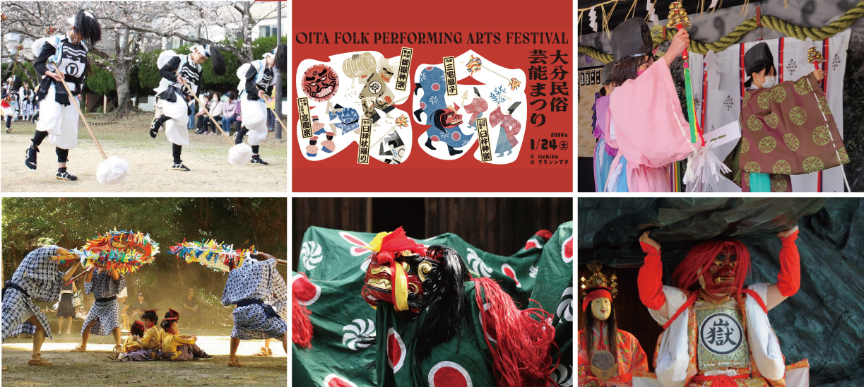 出 演:臼坪杖踊り(佐伯市)、三輪流臼杵神楽(臼杵市)、宮園楽(中津市)、三宅獅子(竹田市)、御嶽神楽(豊後大野市)