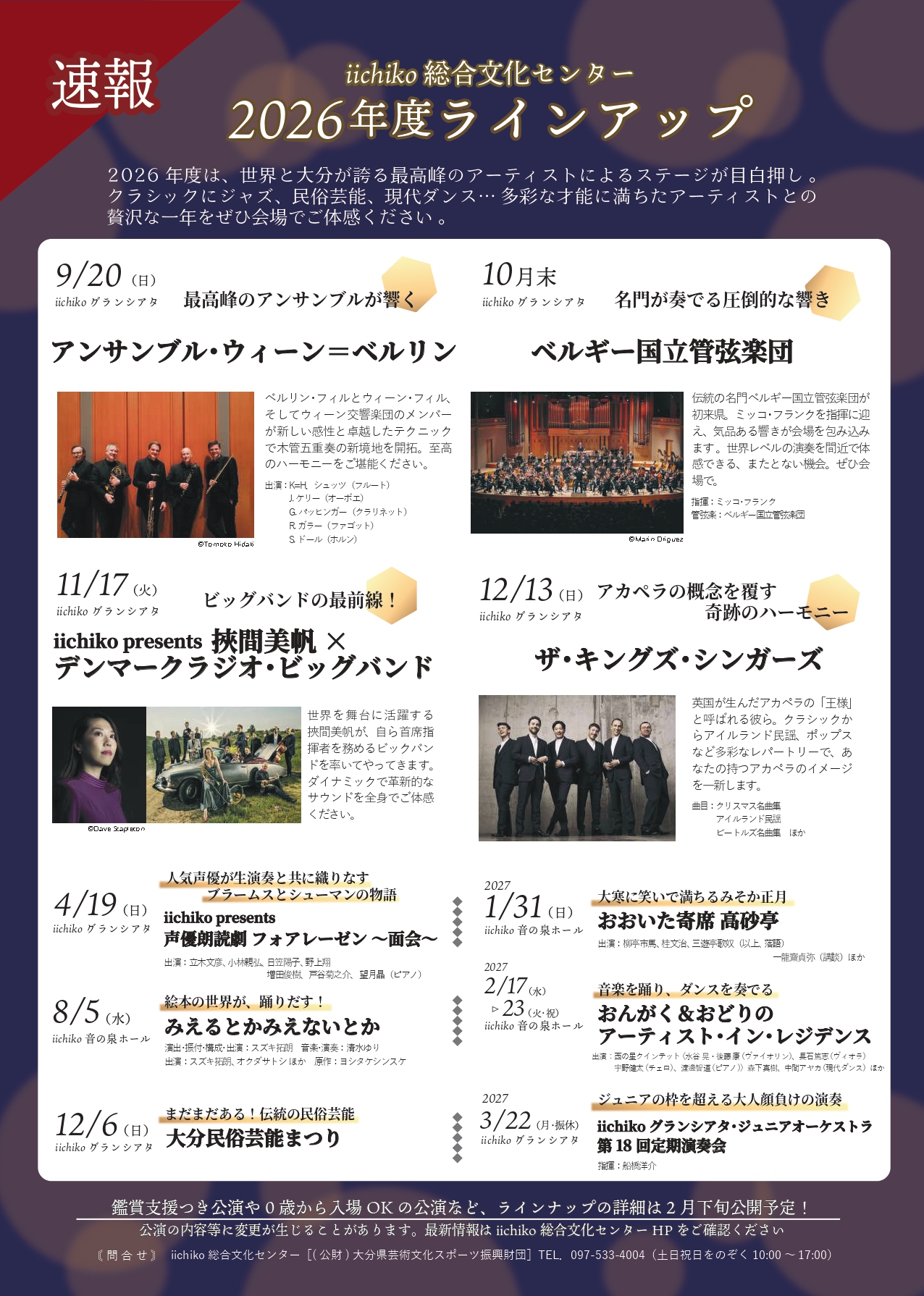 【速報】iichiko総合文化センター 2026年度ラインアップ