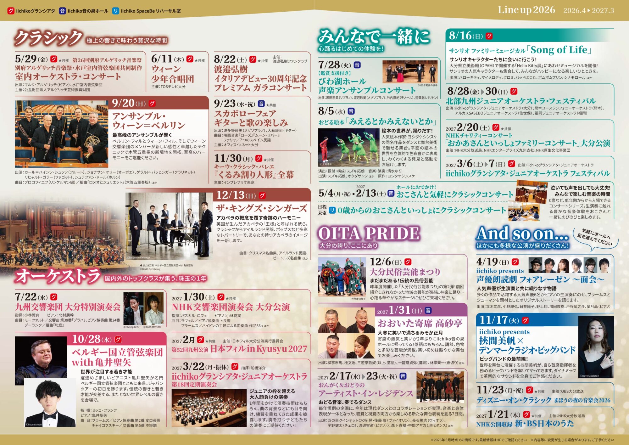 2026年4月~2027年3月までのiichiko総合文化センター主催・共催公演ラインアップを発表します。
